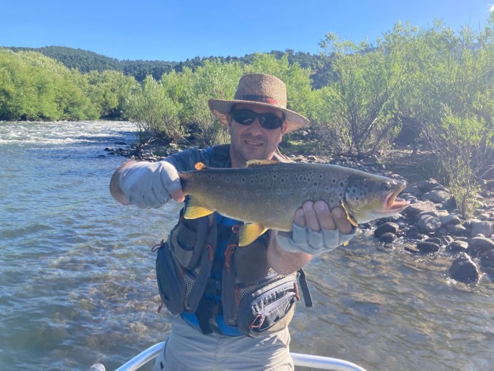 Resident brown trout and rainbows are in our water. In a float trip you can expect average 16 to 22 inches trout, every week we are seeing and catching 24 plus inches resident trout. Rarely we see other local boats floating.